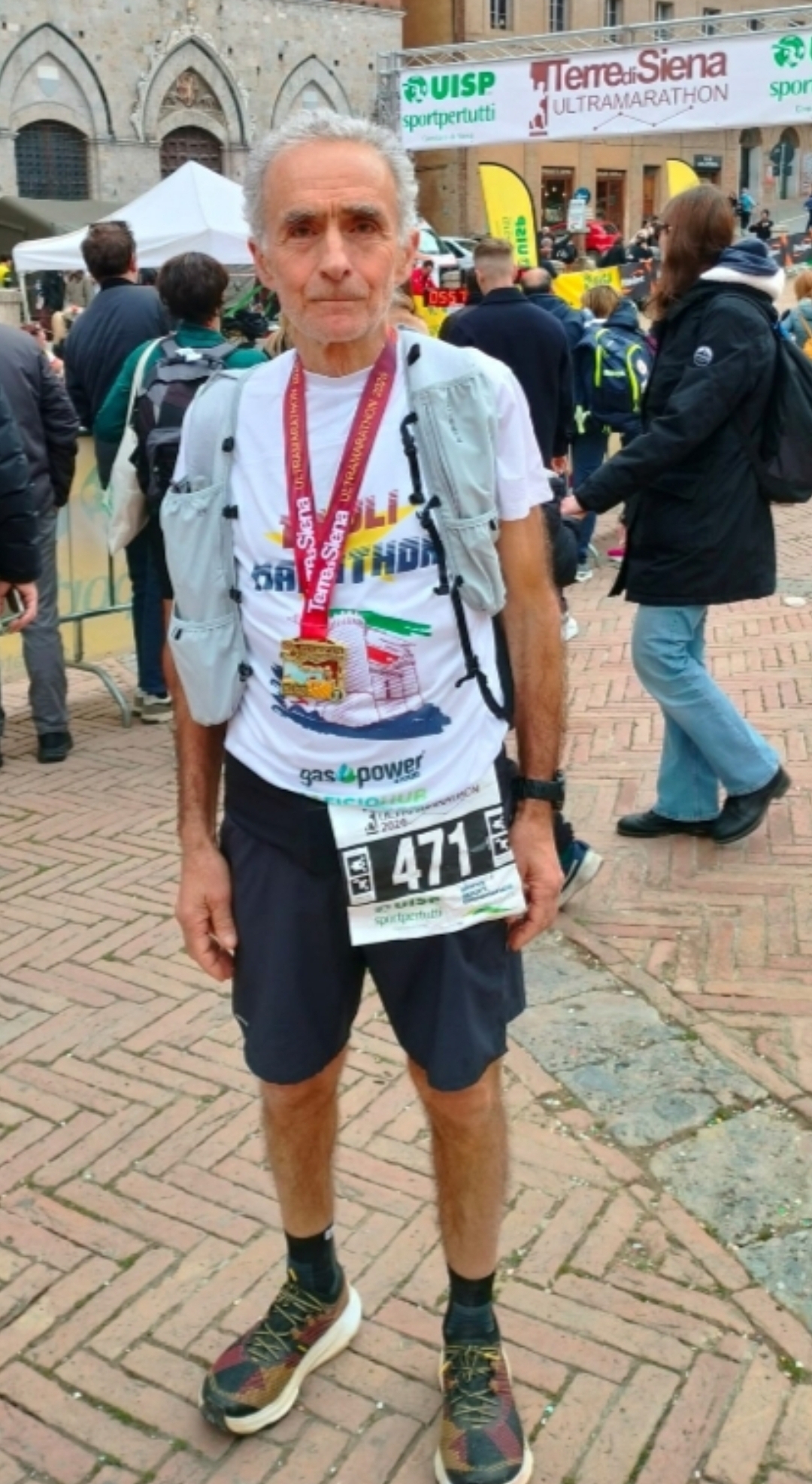 Siena, gioiello architettonico medievale che continua a stupire e ad incantare. Questa volta, però, a conquistarla siamo stati noi. Noi che abbiamo sfidato il sonno nelle prime ore del mattino, avvolti dal buio e dal silenzio, in viaggio verso uno start emozionante nel cuore di un paese ancora addormentato: San Gimignano, perla toscana sospesa nel tempo, dove il passato sembra respirare insieme ai runner pronti a partire. È lì che ha preso vita, domenica 1 marzo 2026, la Terre di Siena Ultramarathon, una 50 km tutta da vivere e da sentire sulla pelle. Un viaggio personale e intimo ma al tempo stesso condiviso con tante anime affini. Un percorso straordinario nella dolce armonia della Val d’Elsa e della campagna senese, tra strade bianche, vigneti, campi coltivati e boschi di querce, sfiorando un tratto della Via Francigena e attraversando borghi medievali carichi di storia. Al 32° km splendida l'accoglienza di Monteriggioni dopo una salita quasi esagerata, una di quelle che mettono a dura prova il corpo e la mente dove si è sentito tutto il peso sulle gambe ormai di legno, dove è servita tanta forza di volontà per continuare a spingere. E finalmente come un miraggio, quel cartello con su scritto “Siena” ha riavviato i “motori”. Attraversare Porta Camollia sotto il motto “Cor magis tibi Sena pandit” (Siena ti apre un cuore ancora più grande della porta che stai attraversando) è stato di grande supporto donandoci tutta l'adrenalina necessaria. Un sostegno invisibile che ha dato forza a tutti noi passo dopo passo fino alla “conchiglia” di Piazza del Campo, dove il traguardo non ha rappresentato solo una linea da varcare ma un punto in cui fatica, emozione e sogni si incontrano. Un pensiero speciale va ad Olirio Pocetta, che ci ha onorati conquistando una meritata medaglia. Campione d’Italia nella sua categoria negli anni passati, un tempo capace di correre la maratona sotto le tre ore, punto di riferimento nel podismo laziale da oltre vent’anni. Oggi, a 70 anni, è un grande ULTRAMARATONETA. Umile, silenzioso, pacato. Un atleta straordinario che non ha bisogno di proclamarsi tale. Un esempio autentico di passione e dedizione. E non posso non citare Sandro Angeloni, M65, al suo secondo esordio in maglia TM, che ha affrontato la 18 km con esperienza e intelligenza, dimostrando che la determinazione non ha età. Poi ci sono io, che quei 50 km me li sono goduti davvero. E se ci ripenso mi viene da sorridere e chiedermi: “Ma come ho fatto?”. La fatica si dissolve in fretta. Quello che resta è la consapevolezza di aver vissuto una giornata piena, intensa, ricca di emozioni vere con la giusta compagnia. E, in fondo è proprio questo il vero traguardo.